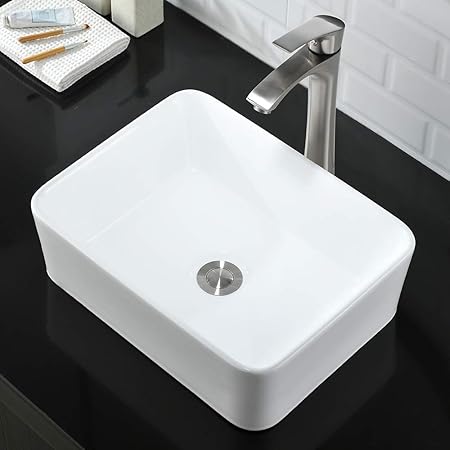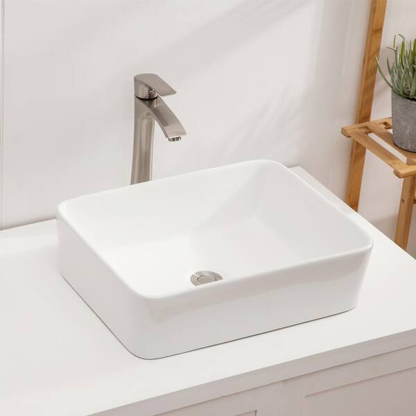 Kraus rectangular white porcelain ceramic bathroom vessel sink and ramus faucet combo set satin nickel finish c kcv 122 1007sn the home depot.